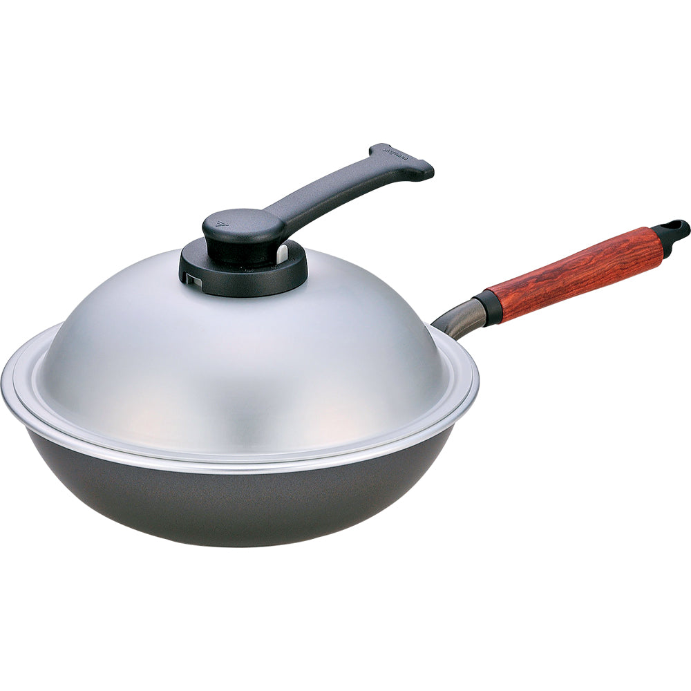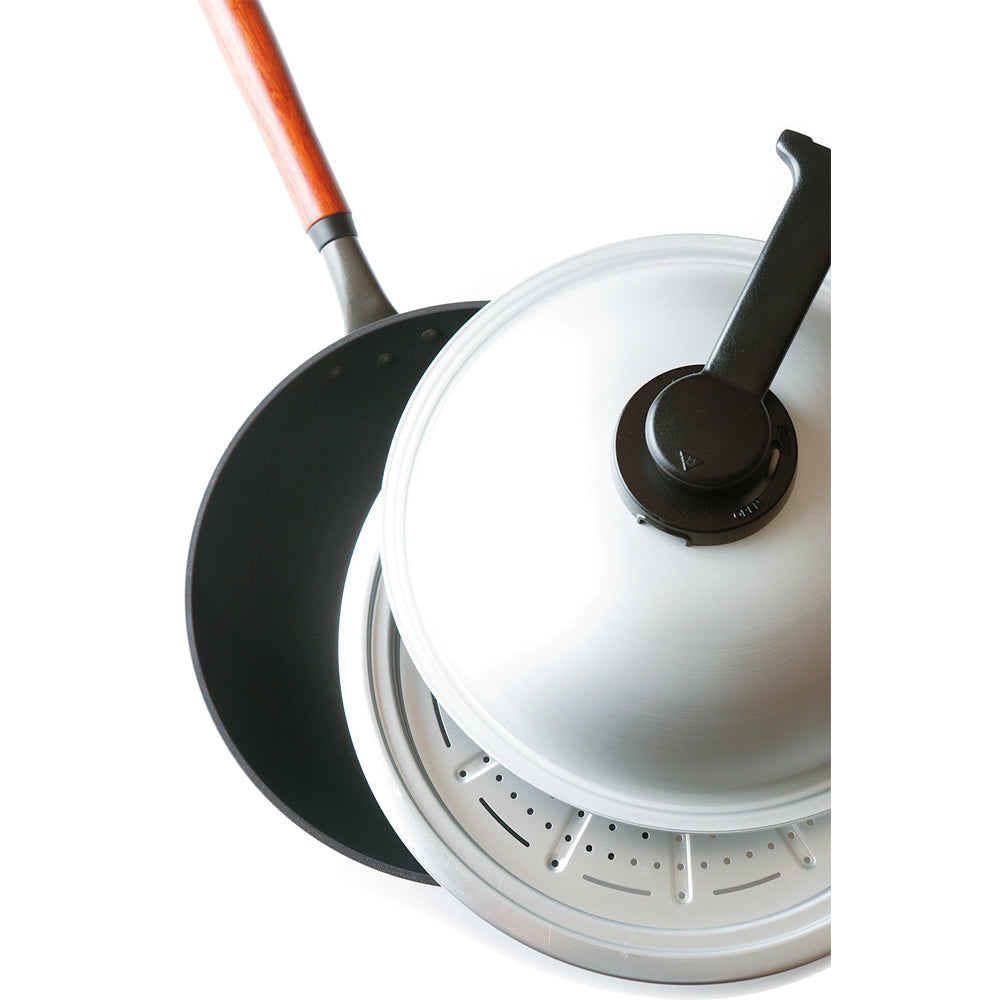 材質:本体/アルミキャスト製 蓋、トレー/アルミニウム合金(アルマイト加工) 内面加工/テフロンプラチナプラス加工 外面加工/ふっ素樹脂塗膜加工(カームナイトグレー)