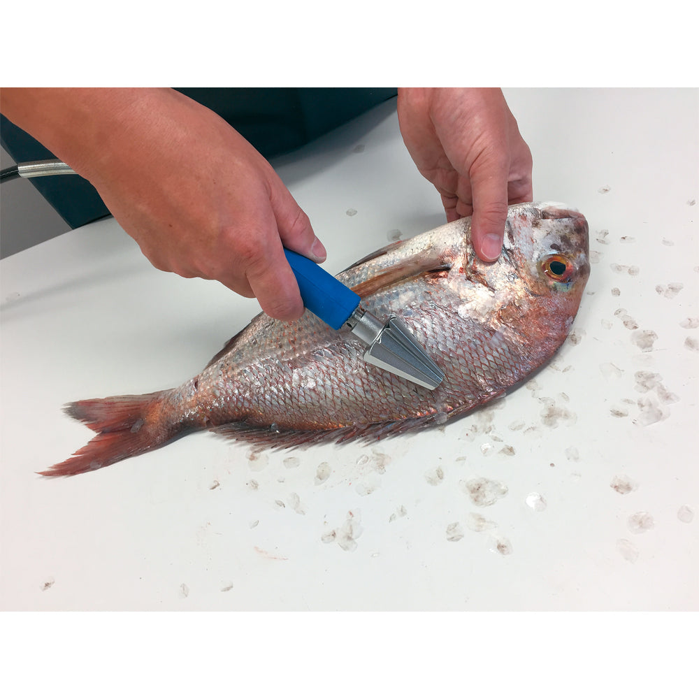 ●独自形状の回転刃:傾斜10枚刃の独自形状で、細かな部分のウロコもしっかり取れる!