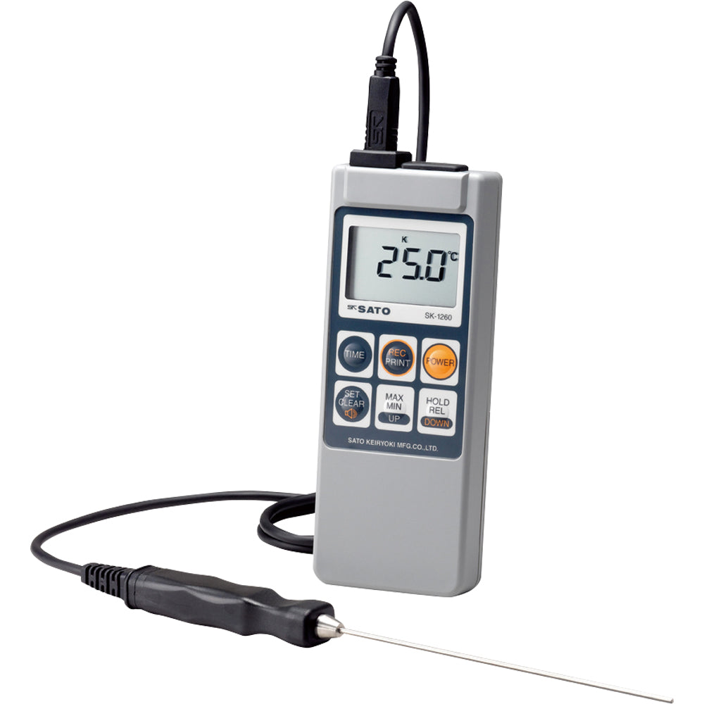 SK-1260は、ハンディタイプのボディに多機能を集約した実用性の高いデジタル温度計です。また、機能的なデザインで使いやすく様々なニーズに幅広く対応します。