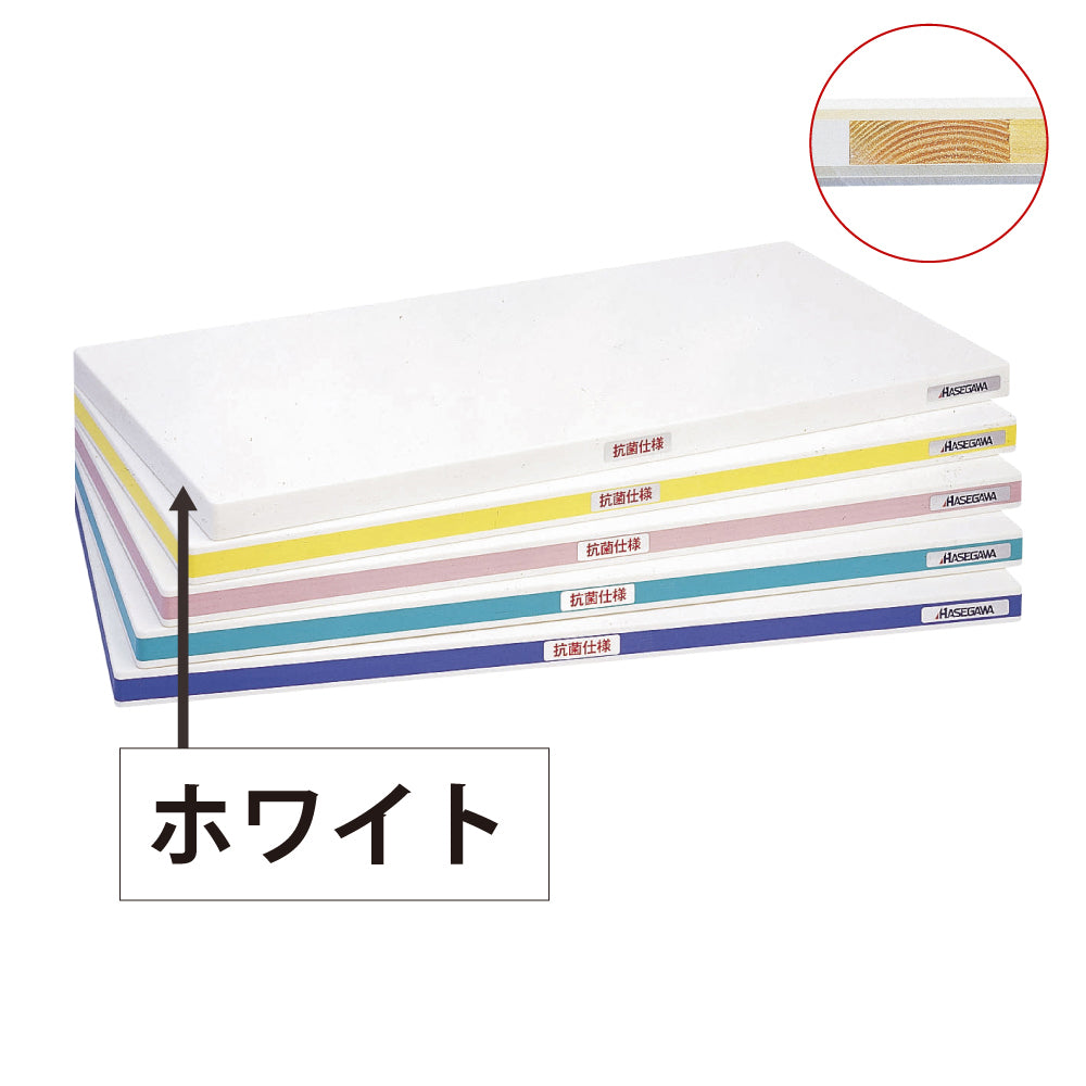 ポリエチレン「かるがる」に抗菌・防カビ効果を加えた木芯入り軽量マナ板です。