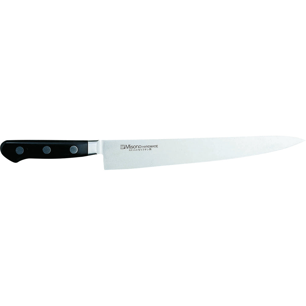 切れ味が冴え、しかもサビにくい。ミソノモリブデン鋼庖丁は、モリブデンとバナジウムの入ったハイカーボンの高級ステンレス・モリブデン鋼を使用し、ハイレベルの技術を駆使した理想の洋包丁です。刃身と一体のツバが衛生的。切れの冴えと耐久性を両立させた最高の出来ばえが、またひとつ秀作を生みました