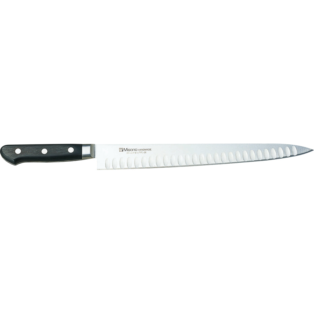 切れ味が冴え、しかもサビにくい。ミソノモリブデン鋼庖丁は、モリブデンとバナジウムの入ったハイカーボンの高級ステンレス・モリブデン鋼を使用し、ハイレベルの技術を駆使した理想の洋包丁です。刃身と一体のツバが衛生的。切れの冴えと耐久性を両立させた最高の出来ばえが、またひとつ秀作を生みました。