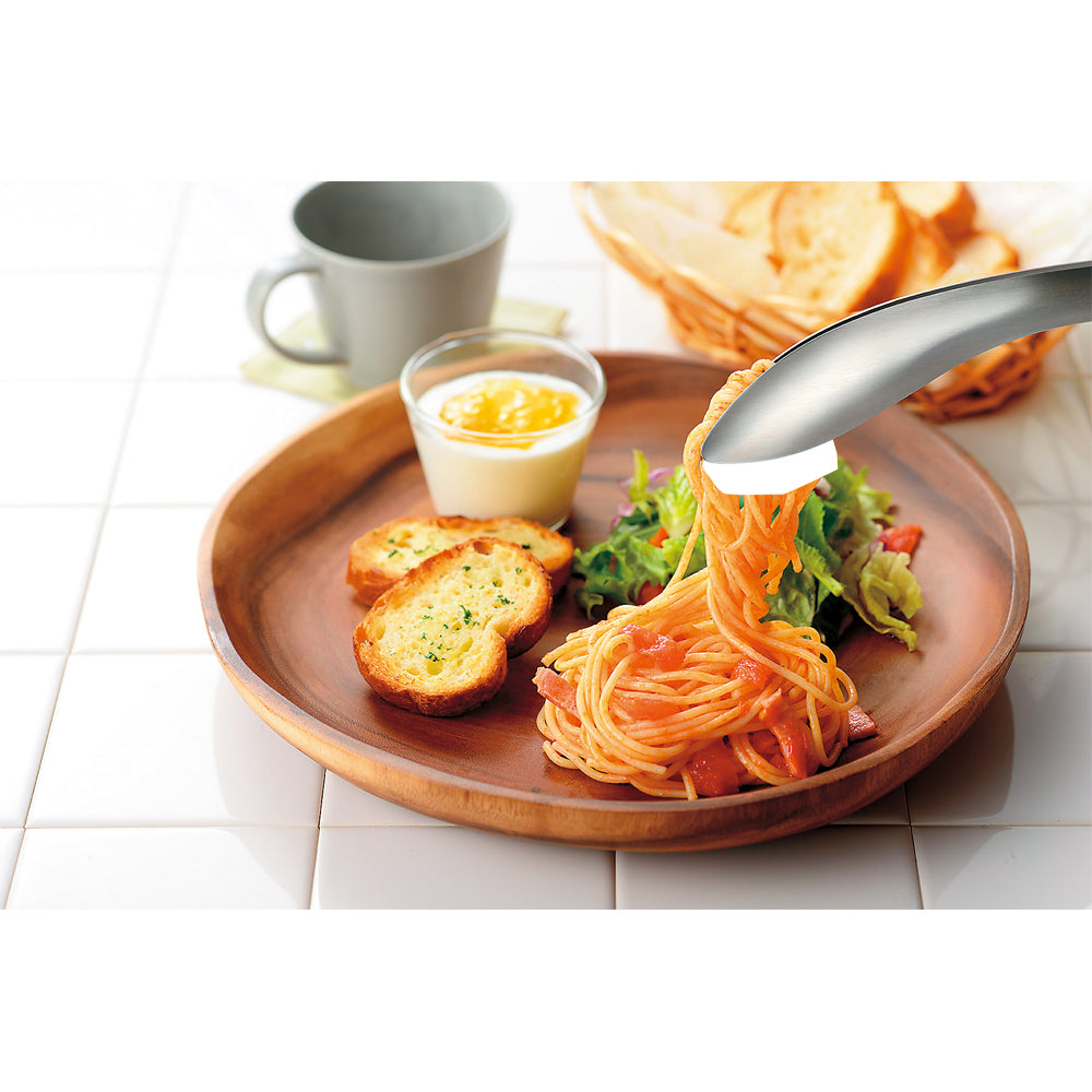 ・先端が細く、パスタやサラダをきれいに盛りつけることができます。