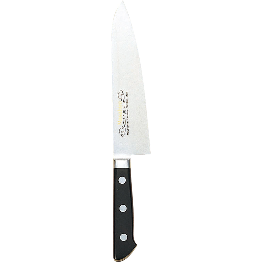 錆に強く、切れ味の持続性に優れた正広オリジナルのステンレス鋼 (MBS-26)を使用した最高級ステンレス包丁のシリーズです。手に伝わる重量感はプロの感覚そのままに、実用性を重視した本職用牛刀です。
