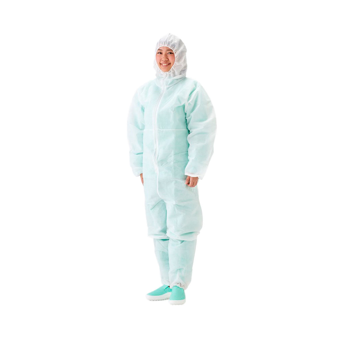 ・丈夫でバリア性のあるポリプロピレンスパンボンド不織布製です。軽くて、通気性があり、着用感に優れたつなぎ服です。