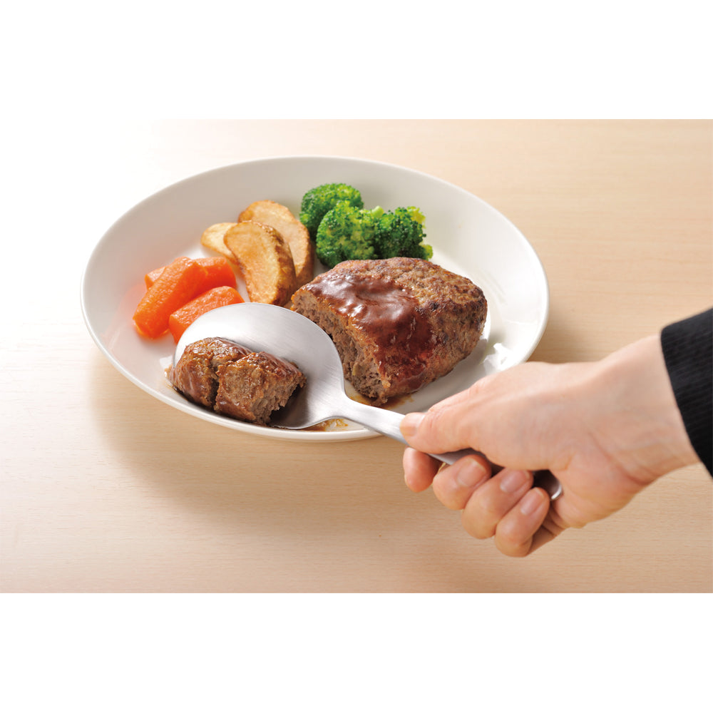 お皿の上で食べやすい大きさにカットし、そのまま取り分けができる幅広のナイフです。
