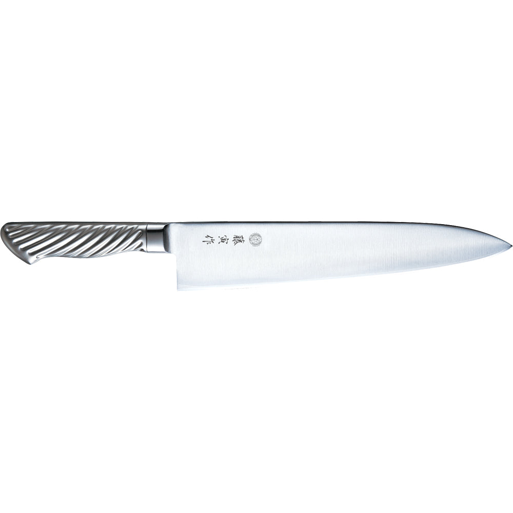 独自のDPコバルト合金鋼は、低温ガス還元法によって不純物を取り除いた高純度の鉄鉱石を13クロームステンレス鋼によって挟み込んだ画期的な複合素材です。切れ味とお手入れのしやすさ、そして妥協のない刃付けによって、業務の世界で定評の割込複合材の刀身と新世代のオールステンレスハンドルを組み合わせた、欧州をはじめとする海外でも非常に人気が高い、まさにオールステンレスナイフのグローバルスタンダードです。