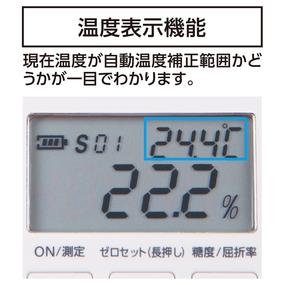 最小標示:糖度(Brix値)0.1%、屈折率0.0001、温度0.1℃