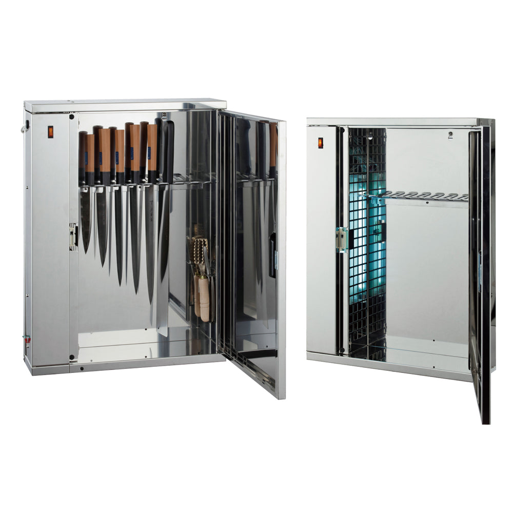 包丁を差す所は衛生的なステンレス仕様、大きな包丁を掛ける部分とペティーナイフ等の小物を差す穴を設定しました。